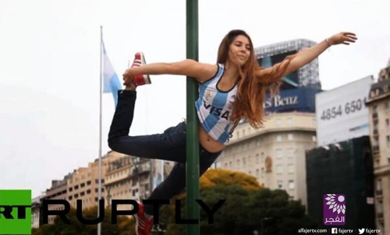تلفزيون الفجر الجديد – تفننت الفتيات المشاركات فى مسابقة ملكة جمال أمريكا اللاتينية لـراقصات العمود فى تقديم مهاراتهن البهلوانية فى أحد الشوارع الرئيسة فى العاصمة الأرجنتينية بوينس آيرس.