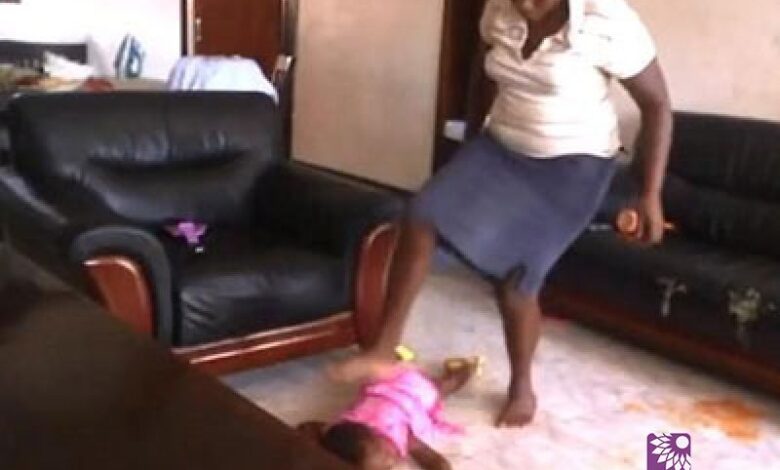 تلفزيون الفجر الجديد– قامت إحدى الخادمات في أوغندا بضرب طفلة وتعذيبها بطريقة وحشية، حيث أظهر مقطع الفيديو الذي كان يستخدم لمراقبة أرجاء المنزل الخادمة وهي ترمي الطفلة على الأرض وتدوس عليها بقدميها وتركلها بشكل قاسٍ ومؤلم، وبعد أن شاهد والد الطفلة ما فعلته الخادمة بطفلته غضب بشدة وقرر معاقبتها، فقام بحلق شعر رأسها بالكامل وضربها ضرباً مبرحاً، وحسب ما تناقله نشطاء مواقع التواصل الاجتماعي، فإن الأهالي تدخلوا ومنعوا الأب من الفتك بالخادمة، إذ كان ينوي قتلها.