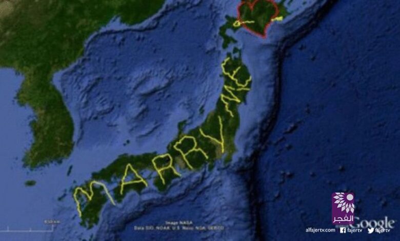 تلفزيون الفجر الجديد– في كثير من الأوقات يعتبر استخدام الطائرات في كتابة كلمة "أحبك" في عرض السماء أو حمل لافتة كبيرة كتب عليها "هل تقبلين الزواج بي؟" هي قمة الرومانسية، ولكن ما فعله هذا الشاب الياباني فاق كل حدود الخيال وذلك بعد أن قضى 6 أشهر في السفر لمدن يابانية مختلفة بهدف التعرف على إحداثيتها لكتابة جملة "هل تقبلين الزواج بي" باستخدام تكنولوجيا تحديد الموقع GPS.