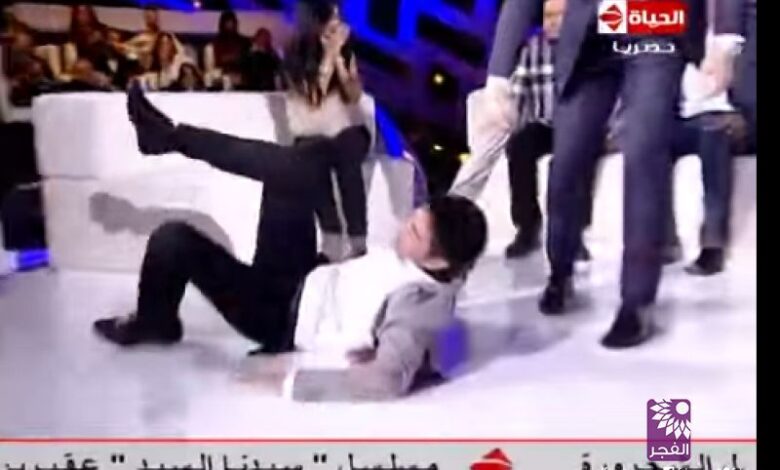 بالفيديو.. سقوط عنيف لممثل لبناني اثناء برنامج مباشر على قناة “الحياة” المصرية
