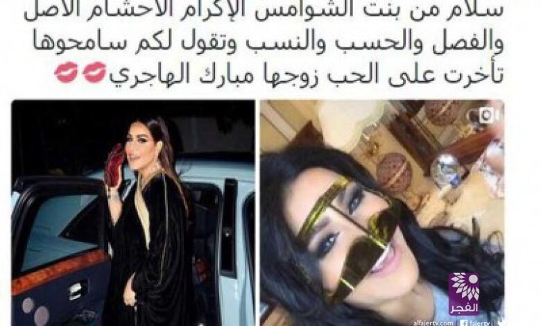 تلفزيون الفجر الجديد- طالبت الفنانة الاماراتية احلام من متابعيها على موقع التواصل الاجتماعي السماح وكتبت أحلام ولأول مرة عبارات تفتخر فيها بقبيلتها وقالت احلام في تغريدتها “سلام من بنت الشوامس الإكرام الاحشام الأصل والفصل والحسب والنسب وتقول لكم سامحوها تأخرت على الحب زوجها مبارك الهاجري” وختمها بفيس لقبلتين مزدوجة .