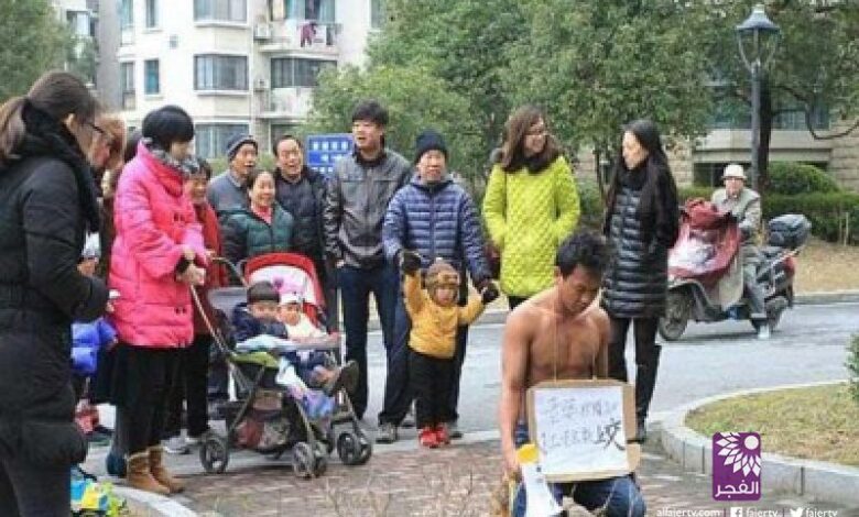 تلفزيون الفجر الجديد- تلقى رجلا صينيا أغرب عقاب من زوجته لمحاولته إخفاء بعض الأموال من راتبه عنها. حسب ما نشرته صحيفة “ديلى ميل”البريطانية، جردت الزوجة زوجها من ملابسه العلوية، وجعلته يرتدى لافتة كتب عليها فعلته فيما أمسك بمكبر صوت ليخبر الجميع قصته ويعتذر لزوجته.