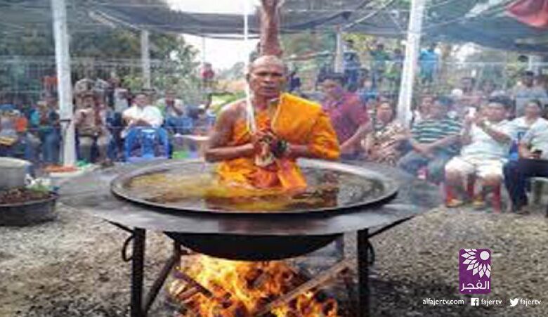 تلفزيون الفجر الجديد – تداول نشطاء عبر مواقع التواصل الاجتماعي، مقطع فيديو لراهب تايلندى يمارس عادة التأمل داخل وعاء ممتلئ بالزيت المغلى والنار، دون أي رد فعل.