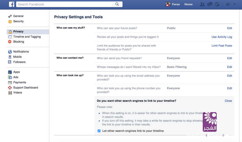 كيف تمنع محركات البحث من أرشفة حسابك على فيسبوك؟