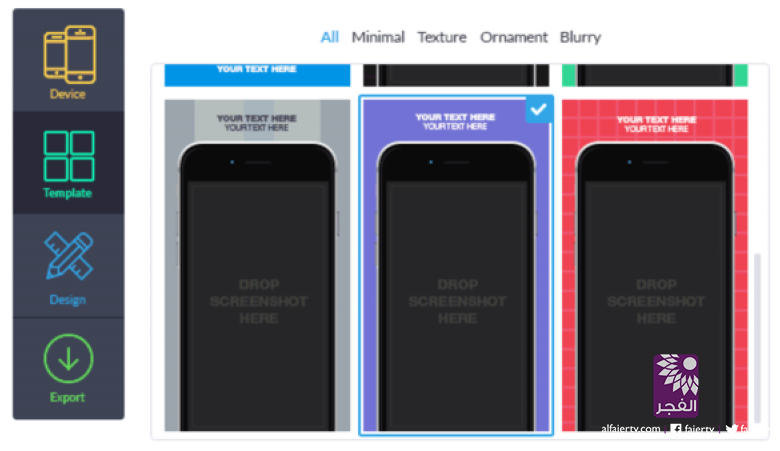 يكفي أن يقوم المستخدم بتسجيل حساب على الموقع، ومن ثم اختيار تصميم يُناسب ذوقه، وبعد ذلك تبدأ عملية إضافة لقطات الشاشة التي ستظهر على أجهزة آيفون، مع إمكانية إضافة كتابة مميزة أعلى الصورة، واختيار الألوان للخلفية ولجهاز آيفون، وفي النهاية يمكن تصدير هذه الصور واستخدامها على متجر آب ستور.