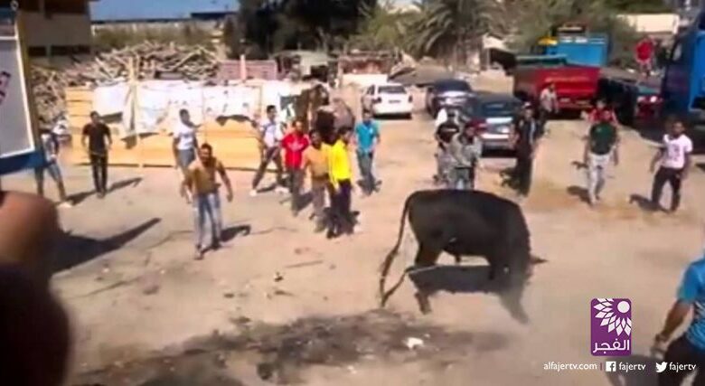 تلفزيون الفجر الجديد – انتشر مقطع فيديو تداوله مستخدمو مواقع التواصل الاجتماعي يظهر محاولة عشرات الأشخاص السيطرة على عجل داخل أحد الأحياء المصرية بعد أن انطلق من قيده قبل الذبح بالعيد.