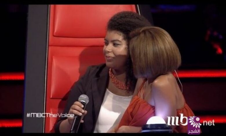 موقف طريف في “ذا فويس”.. شيرين تجلس في “حضن” مشتركة