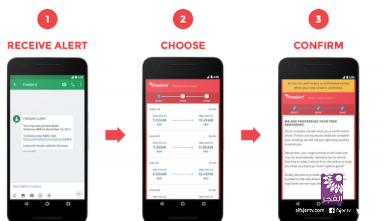 وتتم العملية عن طريق هذه الخدمة خلال ثلاث مراحل، الأولى هي عندما يصل للمستخدم تنبيه يخبره بأن هناك تغيير حدث مع الرحلة الخاصة به، ليتمكن بعد ذلك من اختيار رحلة جديدة عن طريق هاتفه، ومن ثم ببساطة يمكن له تأكيد حجز الرحلة الجديدة ليتم الأمر بهذه البساطة.