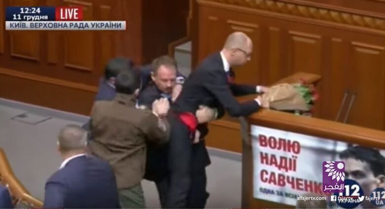 تلفزيون الفجر الجديد – ناشد رئيس الوزراء الأوكراني أعضاء البرلمان التزام الصمت والاستماع لتقريره فيما اندلع بين مؤيديه ومعارضيه عراك خلص إلى حمله من على المنبر لحمايته من الغاضبين