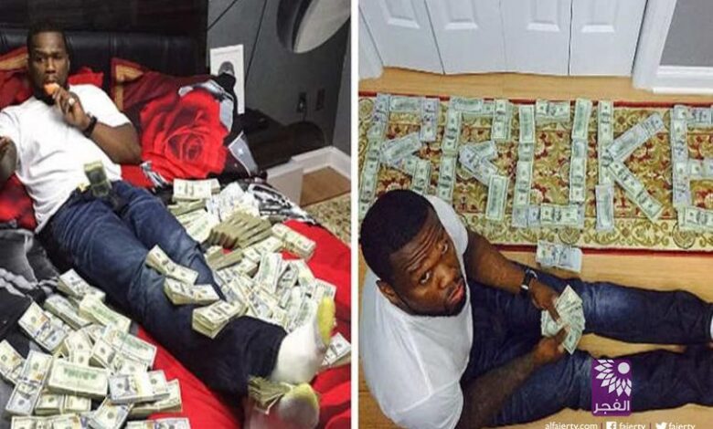 صور المغني “فيفتي سنت” يسبح بين الدولارات تقوده إلى قاعة المحكمة