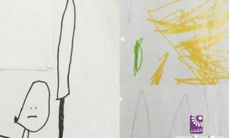 وتشبه الصور التي رسمها الطفل سكينا في يد شخص تشير ملامح وجهه إلى أنه ليس في مزاج جيد، وتبدو بجانبه صورة أشياء لا يمكن معرفة حقيقتها.