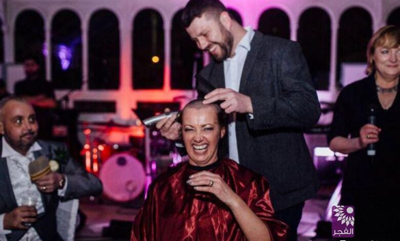 حلقت عروس شعرها بالكامل يوم زفافها لنشر التوعيّة حول سرطان البنكرياس الذي يُعاني منه زوجها.