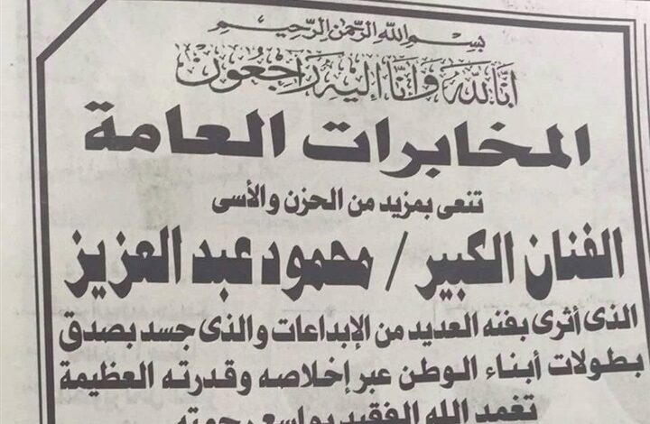 لأول مرة.. المخابرات المصرية تنعى محمود عبدالعزيز