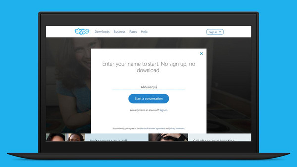 ويمكن ذلك عن طريق ميزة "حساب الزائر" Guest account، حيث تقدم واجهة الزائر المتوفرة حالياً في نسخة الويب من سكايب إمكانية إجراء واستقبال المكالمات دون الحاجة إلى تحميل التطبيق على الحاسب أو التسجيل للحصول على حساب جديد.