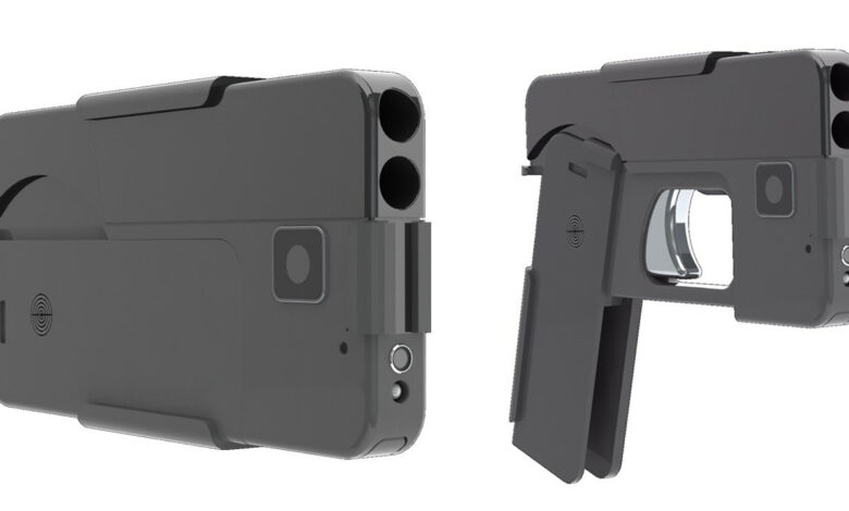 المسدس الذي يمكن طيه ليصبح تماماً على هيئة الهاتف الشهير، سيتم طرحه للبيع في أميركا في غضون أسابيع قليلة، وفي نقرة واحدة يفتح المسدس للتصويب مع خاصية الليزر، بحسب صحيفة التايمز البريطانية.