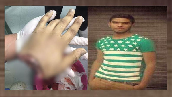 التقرير الطبي للشاب الضحية قال إنه يعاني من بتر كامل لليد اليسرى، وقطع للأوتار والأوعية الدموية والأعصاب، مضيفاً أن الضحية وصل إلى المستشفى في حالة غيبوبة، وتم إدخاله لغرفة العمليات لإعادة زرع اليد مرة أخرى.