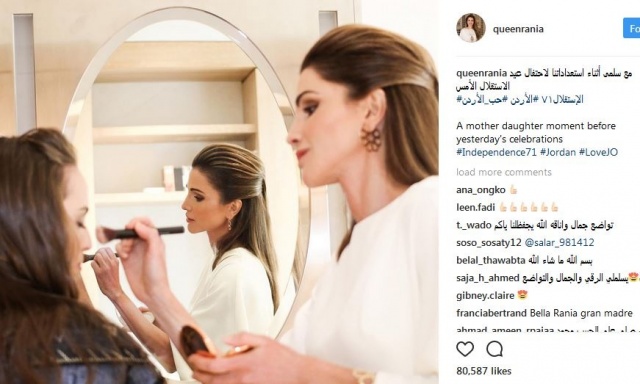 ولفتت الملكة الانظار بصورة نشرتها على تطبيق "انستغرام" وهي تضع الماكياج لابنتها سلمى استعداداً للاحتفال بهذا اليوم.