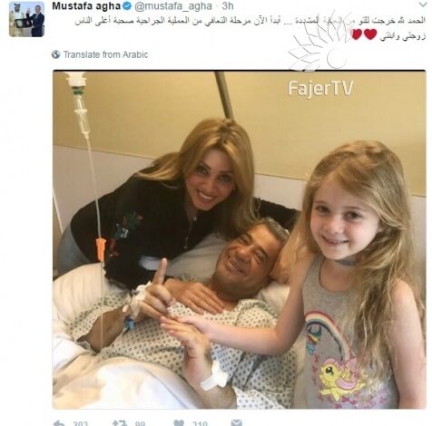 وكان الآغا توجه إلى مدينة ميونخ بألمانيا، لإجراء عملية جراحية وتلقي فترة علاج، من مرض لم يفصح عنه.ونشر عبر حسابه الرسمي على موقع "تويتر" صورة من على سرير المستشفى بعد العملية معلقاً: "الحمد لله …مازلت في العناية المشددة".