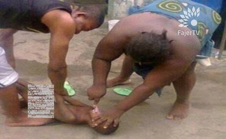 تلفزيون الفجر الجديد | يتخيل الشخص الذي يشاهد هذه الصورة للوهلة الاولى بأن هذه المرأة قاسية، وتحاول قطع عنق الصبي.