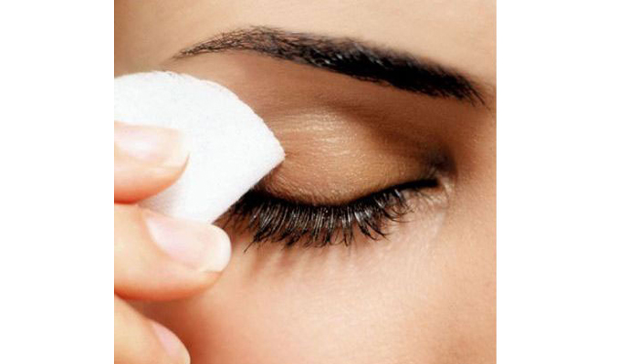 3- اضغطي على الجفون برفق لمدة 30 ثانية لإزالة أثار ظل الجفون والماسكارا.
