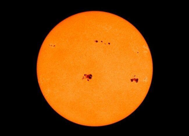 وتظهر البقع الشمسية بشكل متكرر على الشمس وتبدو بلون أكثر دكانة، وهي مناطق من المجالات المغناطيسية المكثفة والمعقدة، وعندما تتحرر طاقتها تتسبب في وهج شمسي ضخم يمكن أن يؤثر على الأرض.