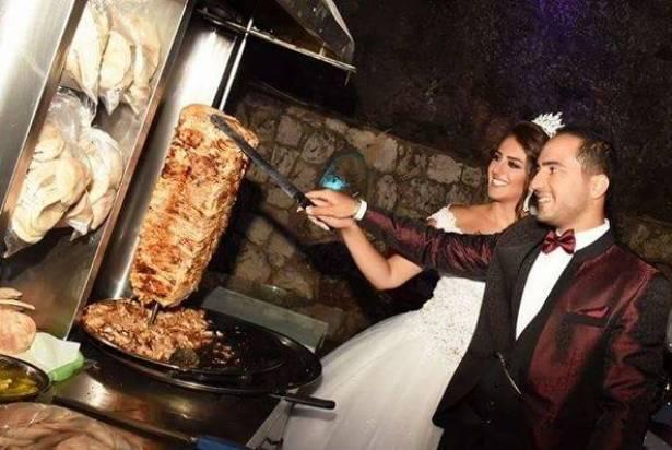 ففي حفل زفافهما الذي أقيم في أرنون، قطعا "الشاورما"، لتتوالى مراسم الزفاف وقطعوا بعدها "بروتوكولياً" قالب الحلوى.
