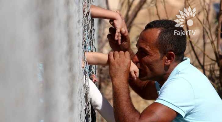 أسرة سورية تتبادل القبلات عبر سياج في قبرص بعد عام