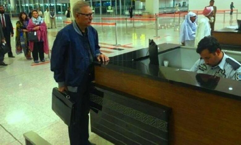 استغرب عاملون في مطار "جناح" الدولي بمدينة #كراتشي الباكستانية، من رئيس البلاد الدكتور عارف علوي، وهو يدخل أمس السبت وحيدا إلى قاعة المسافرين، ويقف بالصف مع غيره منهم، هكذا من دون أي موكب ولا حتى مراسم بديهية.