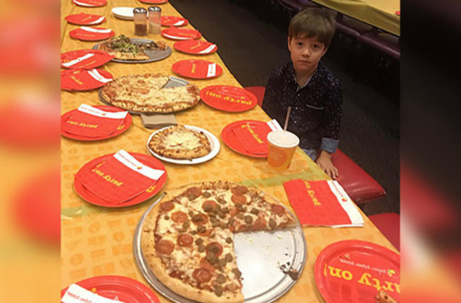 القصة بدأت حين نشرت الأم "سيل مازيني" صورة لطفلها "تيدي" الحزين وأمامه فطيرة بيتزا ومقاعد فارغة حين تخلف 32 من زملائه في المدرسة، من حضور حفل عيد ميلاده السادس والذي أقيم في أحد مطاعم البيتزا المحلية في في توكسون بولاية أريزونا الأمريكية.