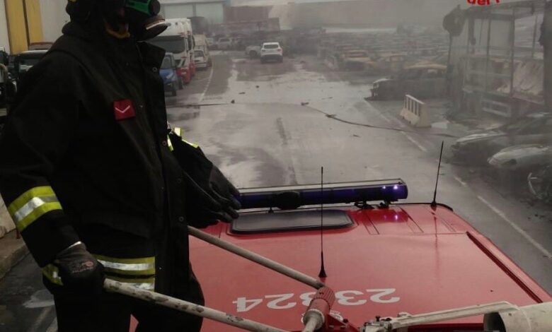 بالصور والفيديو: حريق ضخم يلتهم سيارات فخمة مخصصة للتصدير إلى دول عربية