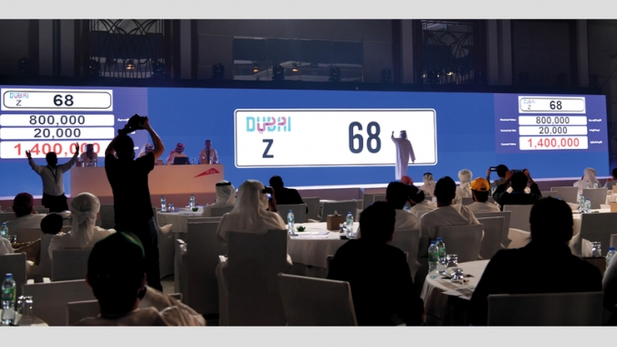 وشهد المزاد بيع لوحة سيارة تحمل رقم مميز بمبلغ مليون و400 ألف درهم (381 ألف دولار أمريكي).