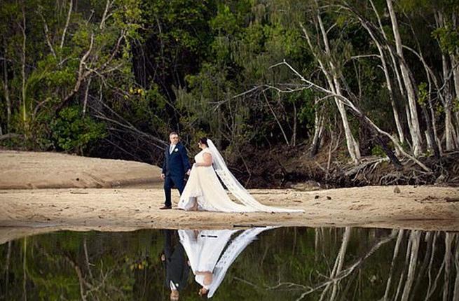 انتشرت على مواقع التواصل الاجتماعي في اليومين الأخيرين صورة لزوجين تمّ التقاطها خلال جلسة تصويرية لهما يوم زفافهما على شاطئ "كيرنز" في مدينة "بالم كوف" بولاية "كوينزلاند" الأسترالية.