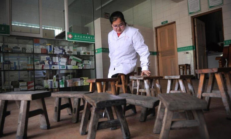 طبيبة صينية بلا رجلين تتنقل لعلاج مرضاها بكرسيين خشبيين