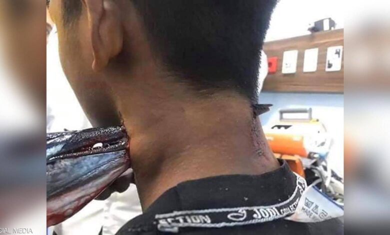 سمكة الإبرة قفزت من المياه.. واخترقت رقبة محمد