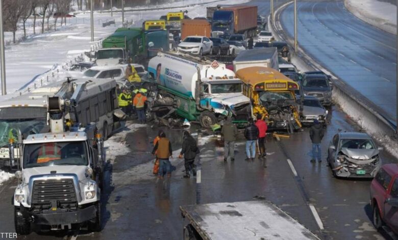 شهدت مدينة مونتريال الكندية حادث سير مروع تسبب إصابة نحو 70 شخصا، عقب تصادم أكثر من 200 مركبة، في أحد شوارع ضواحي المدينة.
