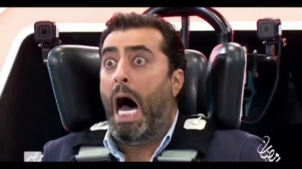 وأوضح: "بس هو المقلب نفسه بغض النظر إنت بتخاف أو لا.. هو على جهاز اختبار طيارين بيقلبك وإنت رأسك كلها لتحت والدم متجمع في رأسك وعم يلف فيك وتحس إنه معدتك راح تطلع من تمك.. القصة هون إنه في شيء بيضايقك نفسيًا مو جسديًا".