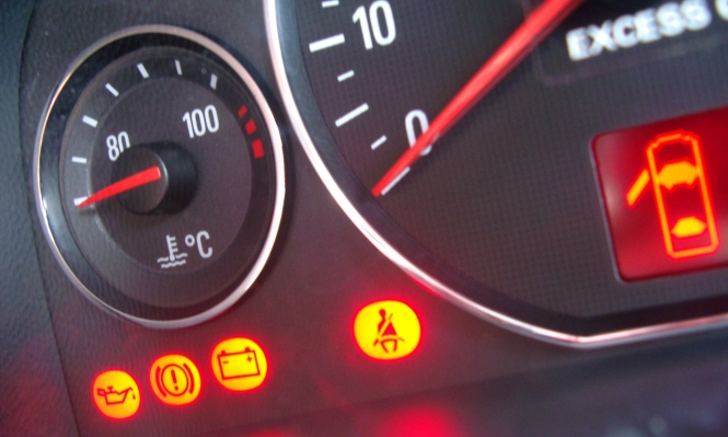 عطل أو تلف حساس درجة حرارة المحرك أو حساس درجة حرارة مياه التبريد.