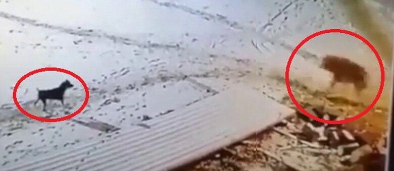 ويظهر الفيديو المرعب الذي التقطته كاميرا المراقبة، أحد كلاب المزرعة وهو يجري مذعوراً إلى داخل الحظيرة، يتبعه الذئب الضخم، وبعدها نشاهد الذئب وهو يخرج من داخل المزرعة يتبعه الفلاح وبيده مصباح مضاء في وجه الذئب الذي يخشى الضوء والنار.