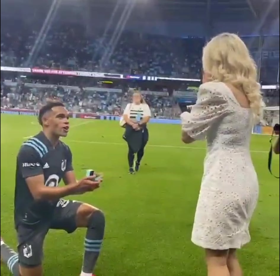طلب لاعب فريق مينيسوتا يونايتد إف سي الأمريكي الزواج من صديقته، بيترا فوكوفيتش، على أرضية الملعب، بعد نهاية مباراة لفريقه في الدوري.