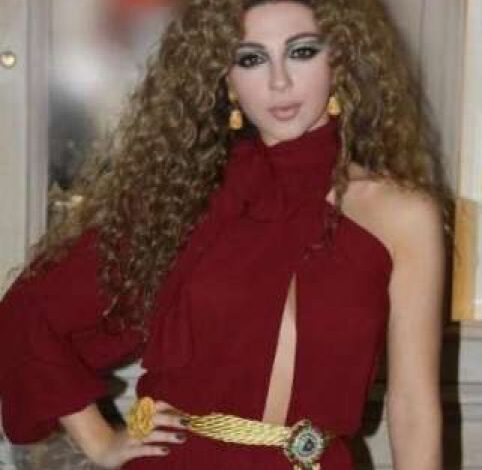 حيث ظهرت مؤخراً في عرض مصمم الأزياء زهير مراد بفستان أحمر قاني مشقوق من الصدر وحتى طول الفستان بالكامل .