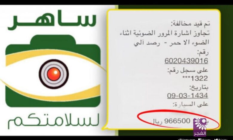تلفزيون الفجر الجديد- تفاجأ سعودي برسالة نصية من إدارة المرور تبلغه عن تلقيه مخالفة بمبلغ مليون ريال سعودي.