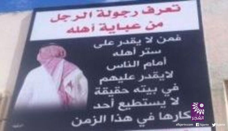 تلفزيون الفجر الجديد– وضعت مدرسة بنات في شمال السعودية، عباءة النساء، معياراً للرجولة. وفي التفاصيل، أن مدرسة في عرعر رفعت لوحة معلقة على واجهة المبنى، مكتوب عليها عبارة: "تعرف رجولة الرجل من عباءة أهله، فمن لا يقدر ستر أهله أمام الناس لا يقدر عليهم في بيته، حقيقةً لا يستطيع أحد إنكارها في هذا الزمن"، ما أثار استغراب السكان.