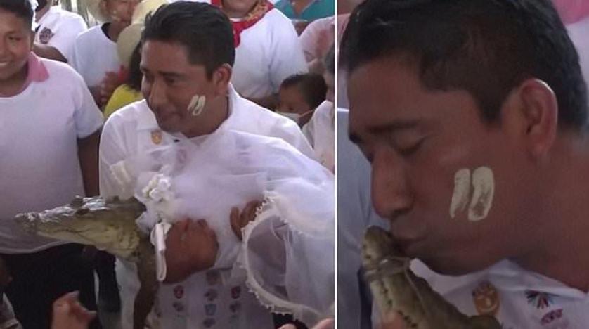 تزوج عمدة سان بيدرو هواميلولا فيكتور هوغو سوسا من التمساح كجزء من طقوس السكان الأصليين القديمة لجلب الوفرة والحظ إلى القرية في جنوب غربي المكسيك، وفقاً لصحيفة «ديلي ميل».