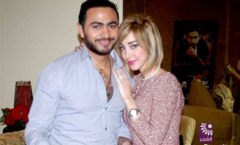 تلفزيون الفجر الجديد – رزق النجم تامر حسني بأول أبنائه من زوجته المغربية بسمة بوسيل.