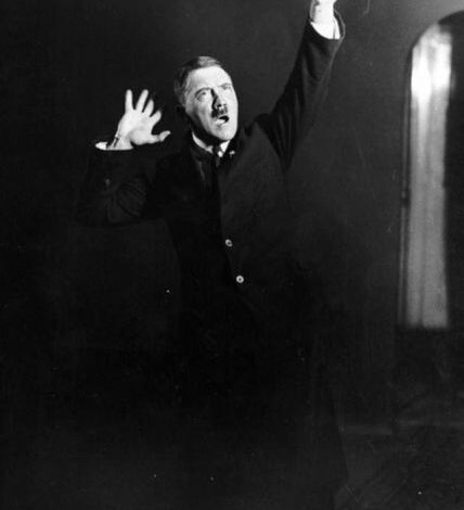 تلفزيون الفجر الجديد- صور لزعيم الحزب الوطني أدولف هتلر وهو يتموضع أمام المصور هاينريش هوفمان خلال استماعه لتسجيل لأحد خطاباته في 1925