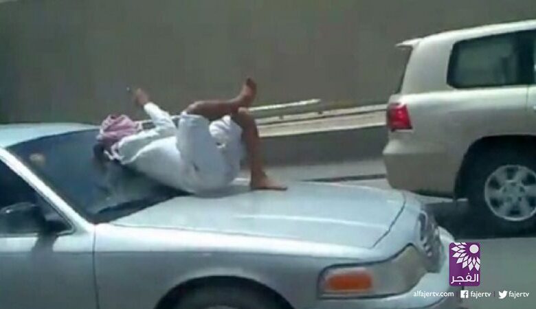 سعودي يتصفح هاتفه فوق سيارة تسير بسرعة 90 كلم