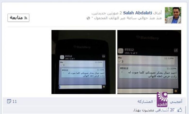 تلفزيون الفجر الجديد|نشر السيد صلاح عبد العاطي مدير الهيئة المستقلة لحقوق الإنسان في غزة – والمتواجد حاليا في تونس صورا عبر حسابه في فيسبوك تشير إلى عملية خلل في التصويت تحصل لمصلحة المتسابق المصري أحمد جمال في برنامج أراب أيدول.
