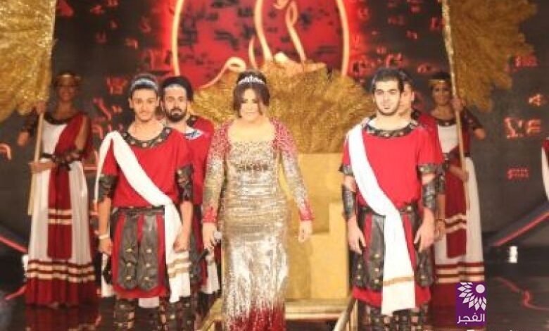 أحلام تدخل محمولة على عرش وترتدي تاج الملكة زنوبيا