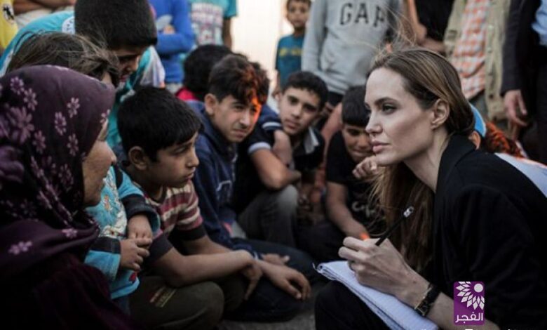 تلفزيون الفجر الجديد- صورتان لأنجلينا جولي وهي تزور اللاجئين السوريين في الأردن ، كانتا بمثابة الدرس لمشاهير العرب والعالم، صورتان أكدتا كم أن هذه المرأة عظيمة ومتواضعة لأقصي الحدود .