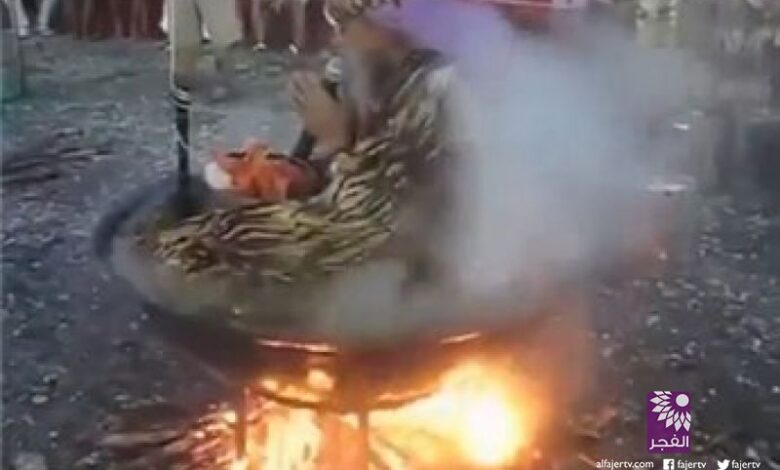 تلفزيون الفجر الجديد – تناقل نشطاء تسجيل فيديو يظهر فيه رجل مسن "يطبخ نفسه" في وعاء مليء بماء مغلي، وكأنه يجهز شوربة مع الخضروات فيما تجمع الناس من حوله وكأنهم ينتظرون حساء ساخنا ولذيذا.